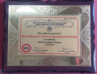 The Institute of Electronics and telecommunication engineers granted Certificate for establishing IETE Student forum. |