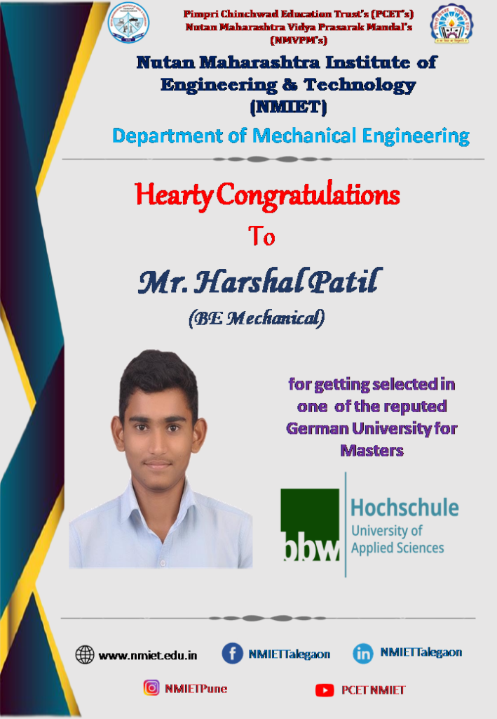 Heartily Congratulations to Mr.Harshal Patil for being selected in German University for Master