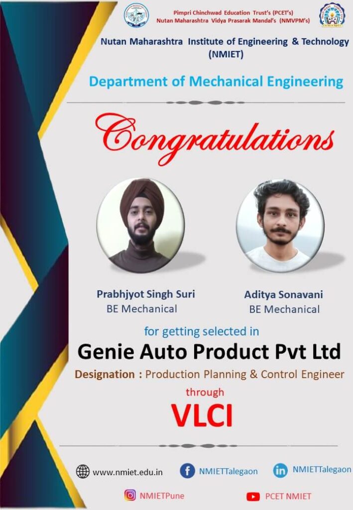 Heartily Congratulations for getting Placed in Genie Auto Products Pvt Ltd through VLCI :